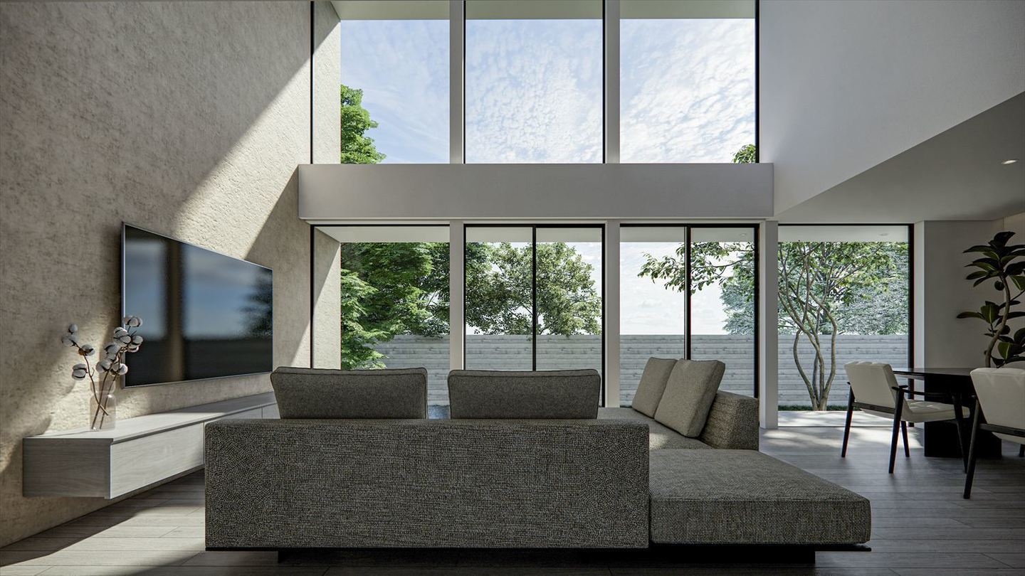 これにより、従来の木造では困難だった圧倒的な大開口窓や、吹き抜けと連動した開放的な大空間が実現可能です。資産価値を守る「確かな構造計算」に基づいた、光と風が通り抜ける理想の暮らしをご提案します。