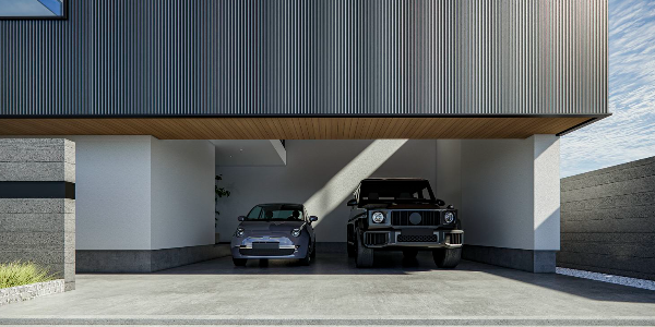 ラーメン構造の躯体の強みを生かして最大9mスパンで3台分のビルトインガレージを実現できます